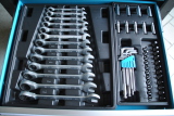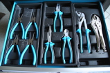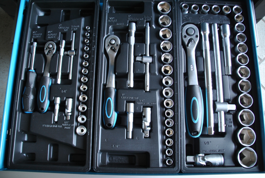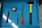 Zum Arbeitsplatz gehört eine Werkbank mit Schraubstock.